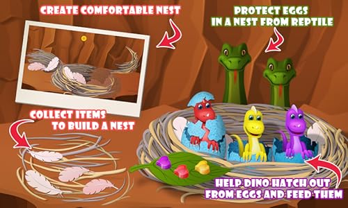 Fun dino challenges like building a nest and making food!